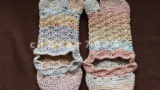 綿のカーディガンをほどいて、フットカバーに編み直しました。