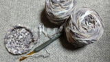 髪の毛のように細い毛糸を4本取りで編みましたが、それでも細すぎたようでサイズが小さくなってしまいました。