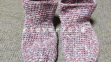 綿のカーディガンをほどいた毛糸で靴下を編みました。