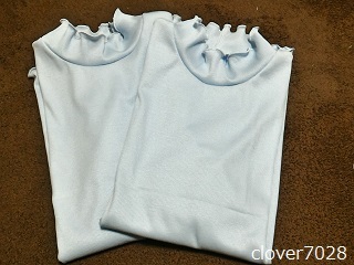 生地は水色で、同じ色の糸がなかったので生成り色のミシン糸を使いました。