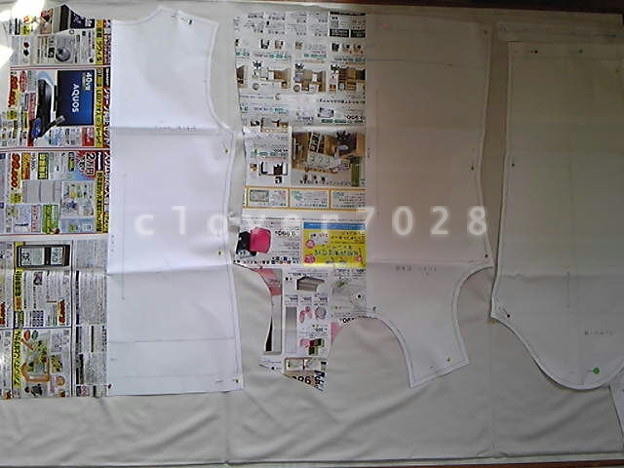 布を裁つときはギリッギリに型紙を寄せて、2着分の生地取りました。