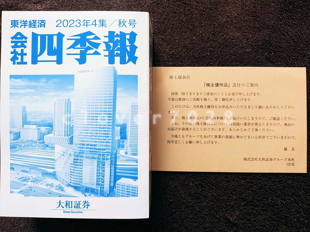 | 10,000株以上 | A,Bより選択 A:2点選択 (1)5,000円相当 (2)2冊 (3)5,000円 B:Web申し込み限定品(1,000円相当) 1点 |