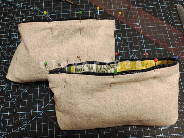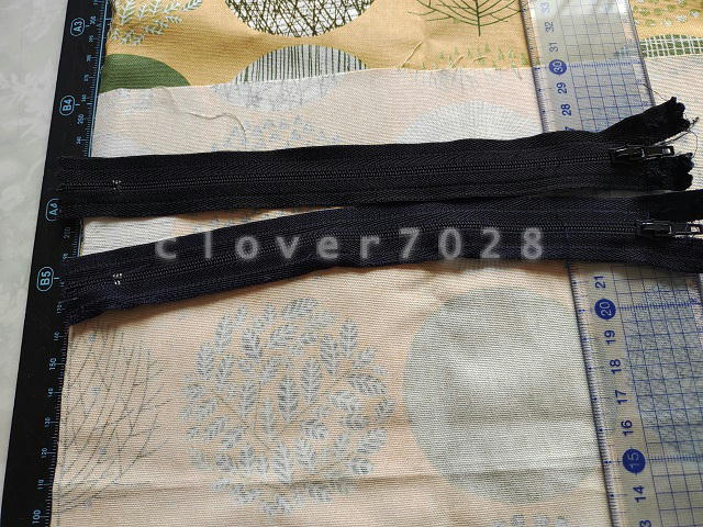 同じポーチを2個作ろうと思っていたのですが、ちょうど良いファスナーがなくて、必要な長さより5mm短い黒と紺があってそれで妥協しました。(生地幅も5mm短くしました)