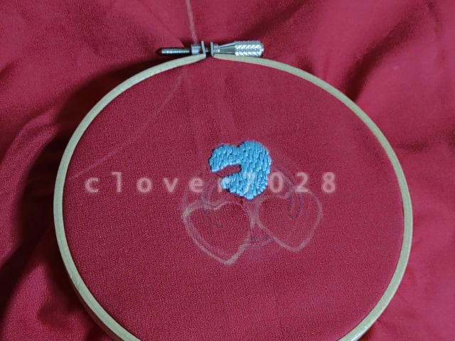 サテンステッチだと引っかけてダメにしそうなので、細かくうめていくステッチを選びました。(お店で本を立ち読みしてきた)