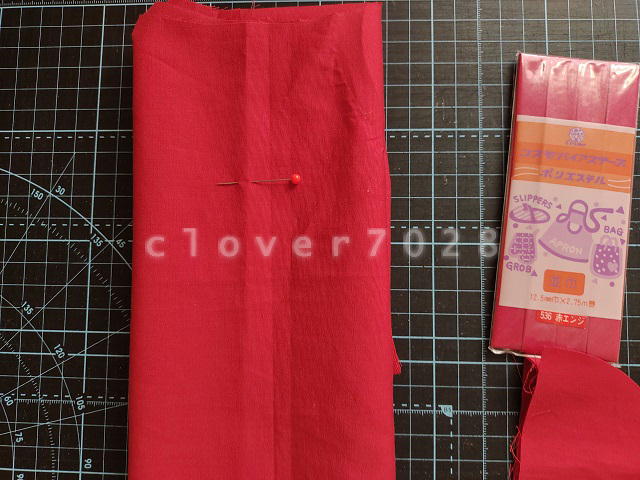 バイアステープは「赤エンジ」と書いてありますが、見た目濃いピンクです。