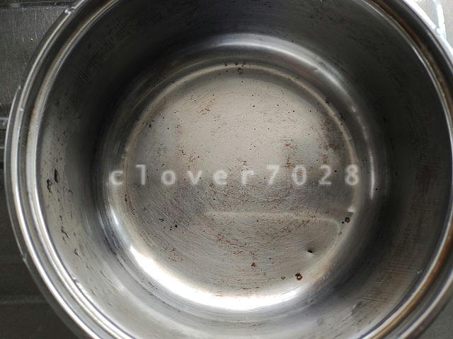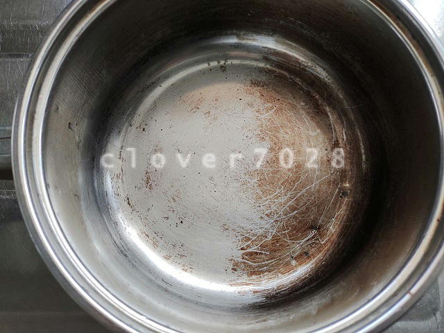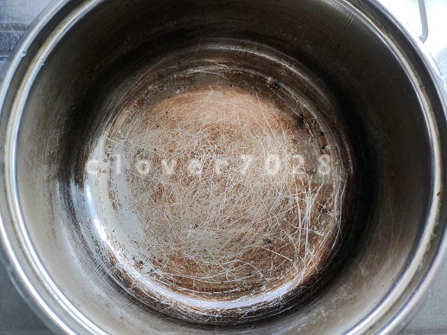 使ったあとは手作りのアクリルたわしでササッと洗って水ですすぐだけなので、いつの間にか渋みが蓄積してしまいました。