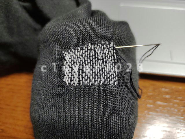 それはさておき、靴下が1足薄くなったので、そういえば以前ダーニングめいたことをしていたなぁ。。。と思い出して、再びやってみました。