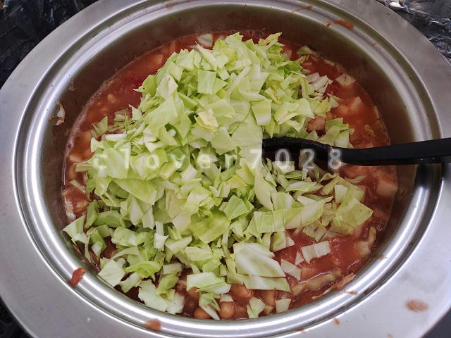 キャベツを入れるの忘れた。。。と気付いたときにはすでに具だくさんだったけれど、ムリヤリ入れました。