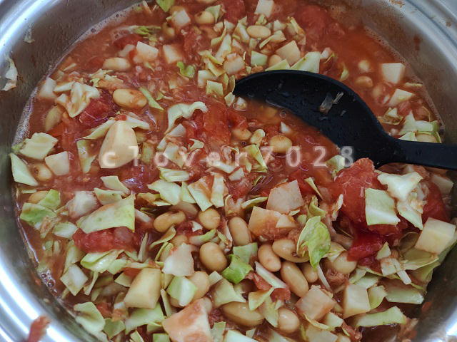 ミネストローネを作ろうと思いましたが、具だくさんすぎてスープじゃなくて野菜の煮物みたいになってしまった。