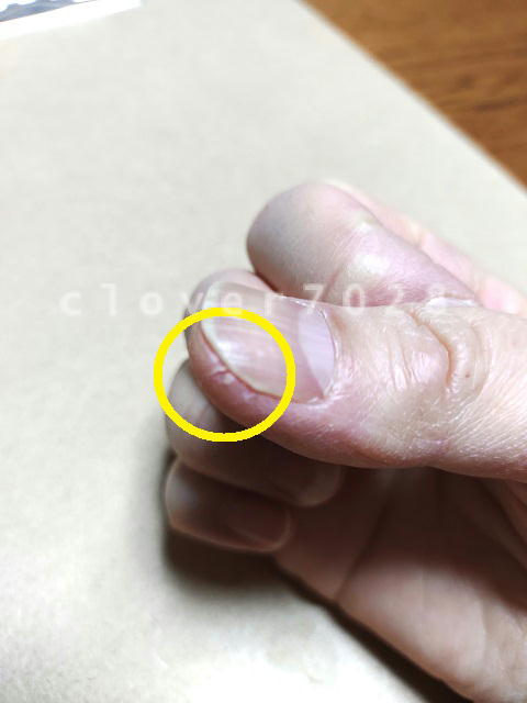 二枚爪はかなり改善していて、ひどく割れているのは写真にも写っている右手の薬指だけです。