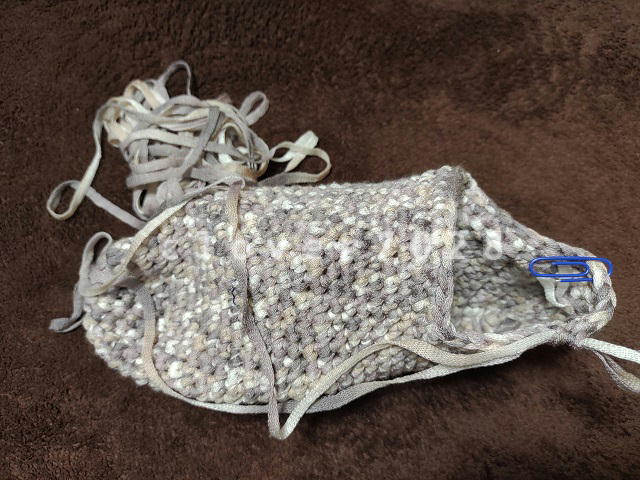 中途半端になっている「おうちばき」を仕上げようと思って編んでいましたが、あと少しの所で糸が足りなくなってしまいました。