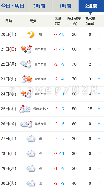 今朝は最低気温が-19℃まで下がりました。