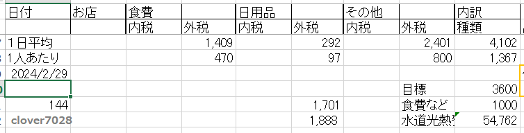 確定しているのは食費・日用品で、食費が1日1,409円、日用品が1日292円でした。
