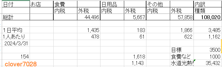 光熱費込みで1日3,485円。食費は1日1,435円でした。