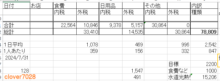 水道料金がまだ出ていないので概算ですが、今月の生活費の目標は1日2,200円でした。