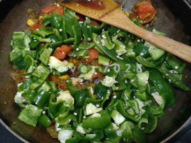 いつものようにピーマンは種もワタも入れてしまいます。栄養価が高いそうです。