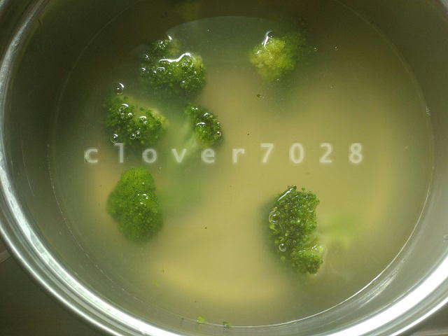 まずラーメンをゆで汁で冷凍ブロッコリーを解凍
