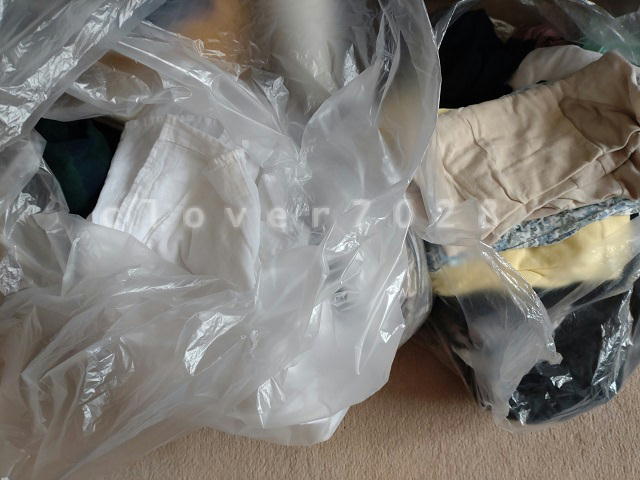 とりあえずゴミ袋に入れて、リサイクルに出せる服と捨てる服を仕分けします。