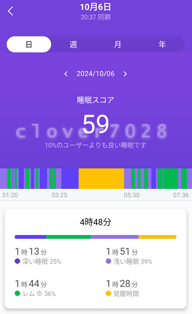 オレンジのところが覚醒している時間で、「この時間寝ていたはずなのに?!」と焦りました。
