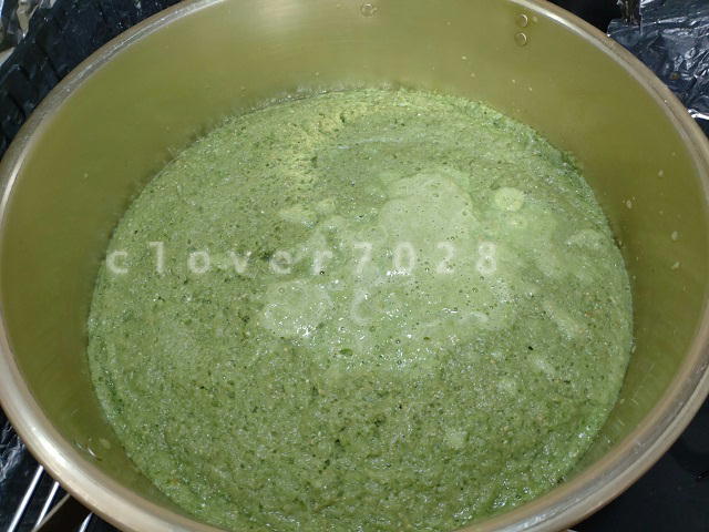 全てミキサーにかけ終わったところ。なかなかに青臭いです。