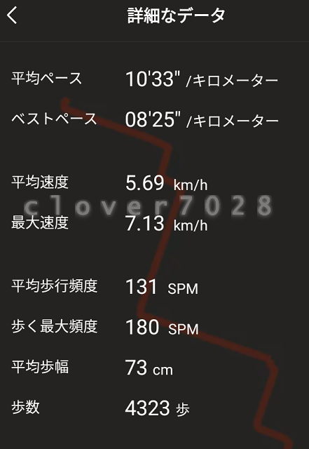 帰宅してからウォーキングのデータを見ると、平均歩幅が73cmでした。