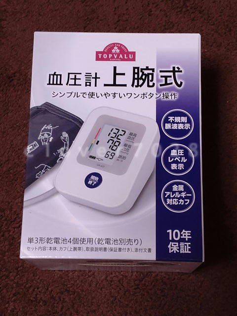 親がすぐにほしいと言うのでイオンに行くと、トップバリュの血圧計がありました。