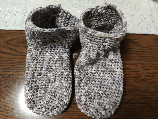 母が繕い物をしていて、なにをついでいるのか見て見ると、昨年編んであげたおうちばきでした。