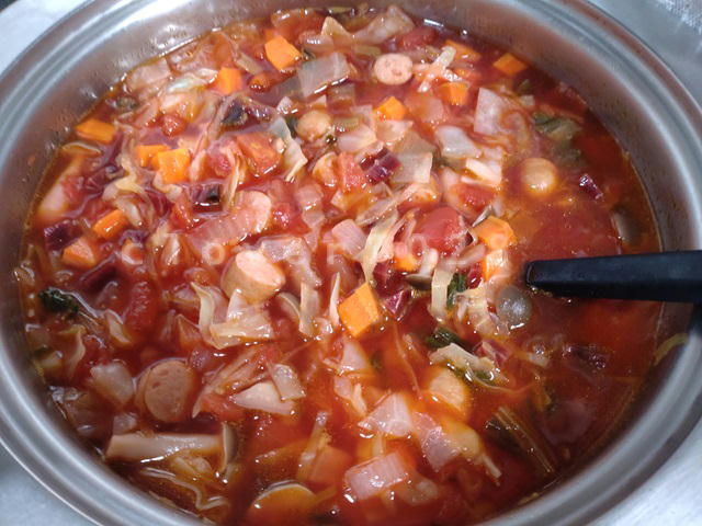 最近野菜不足なので、冷蔵庫や冷凍庫に残っていた野菜でスープを作りました。