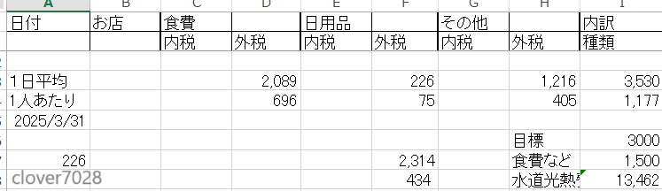 1日3,000円目標のところ、結果は3530円。食費も2,000円超えてるし。