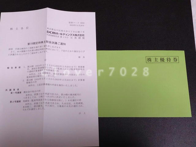 DCMからも優待が届いています。