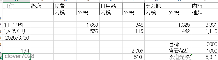 今月は1日の生活費を3,000円に収められるように頑張ってました。