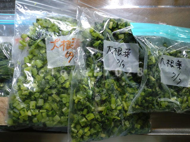 葉っぱは写真のようにして冷凍し、本体はラップで包んで冷蔵庫に入れておいて、早めに使います。