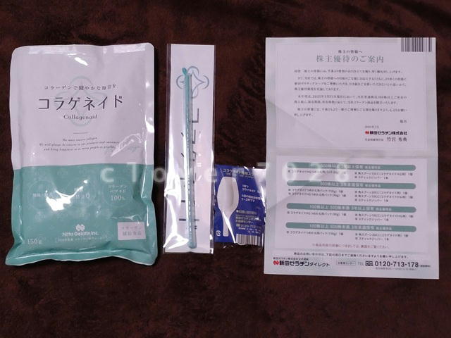 | 100株以上 | コラゲネイドつめかえ用パック(150g)1袋 角スプーン20㏄(コラゲネイド用)1個 スティックジッパー1本 | コラゲネイドHG(90g)1袋 角スプーン10㏄(コラゲネイドHG用)1個 スティックジッパー1本 |