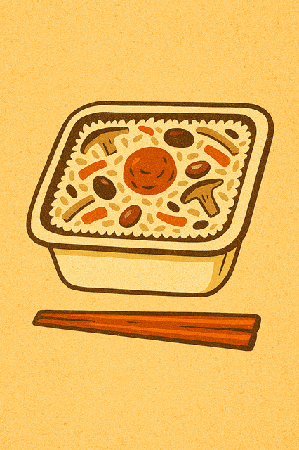 イメージ図ですがパックの五目ご飯です。梅干しが入っちゃっていますけど。見切り品で買いました。