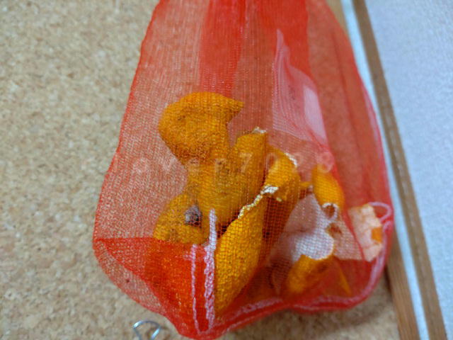 昨冬は冬ミカンのシーズン終わりにためはじめたため、ほんの少ししかたまりませんでした。(コンポストには投げ入れていたけど)