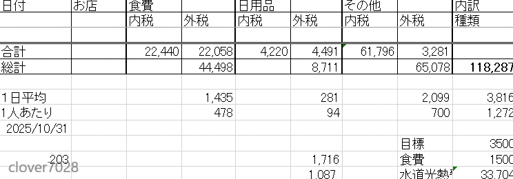 今月の結果を踏まえて、11月の目標は1日4,500円にします。(光熱費も含みます)