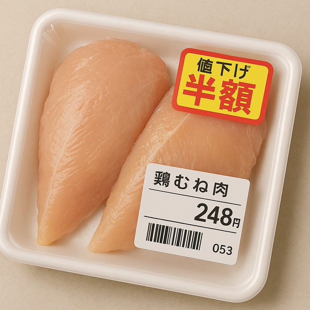 足取り重くスーパーに向かったところ、鶏むね肉が半額になっていました!
