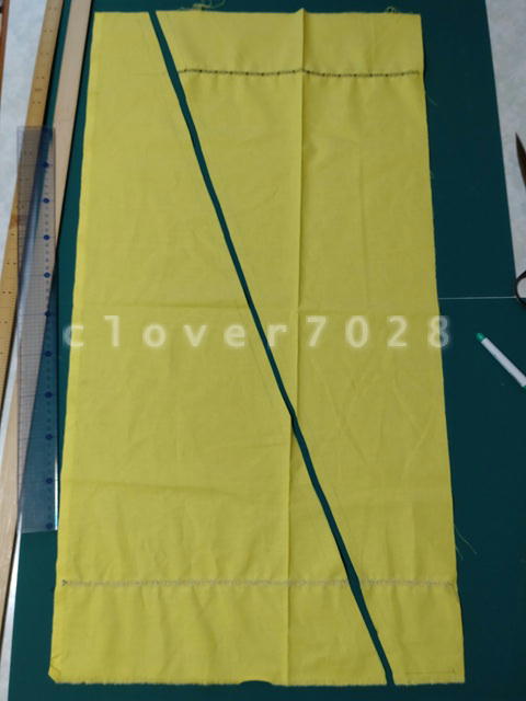 本当は台形にしたかったのですが、生地が余分に必要になるので長方形をこのように切って使いました。