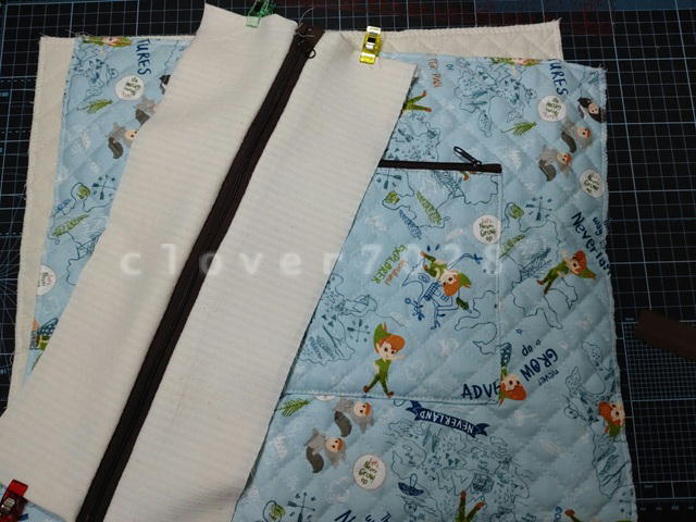 ファスナーが濃い色なのは、持ち手が濃い色しか残っていなかったからで、色を合わせました。